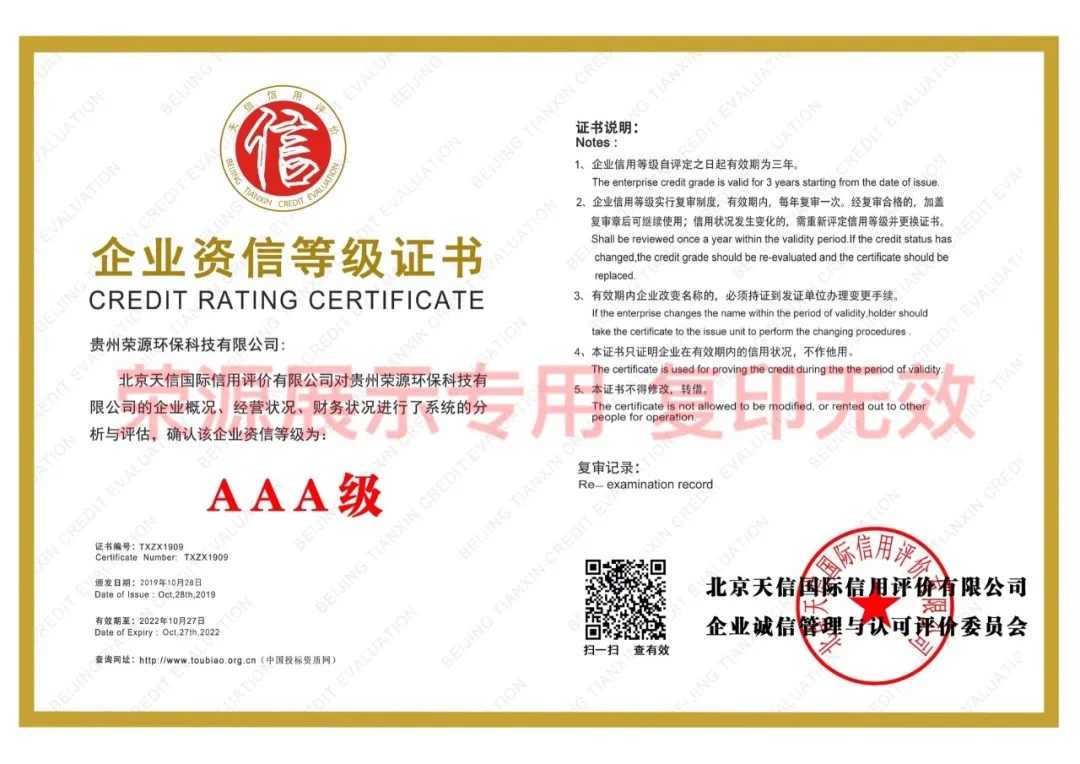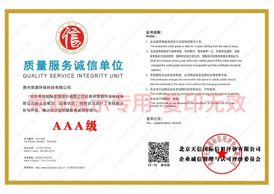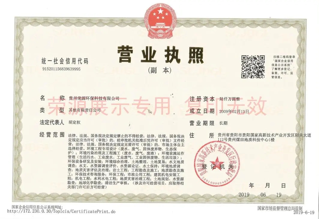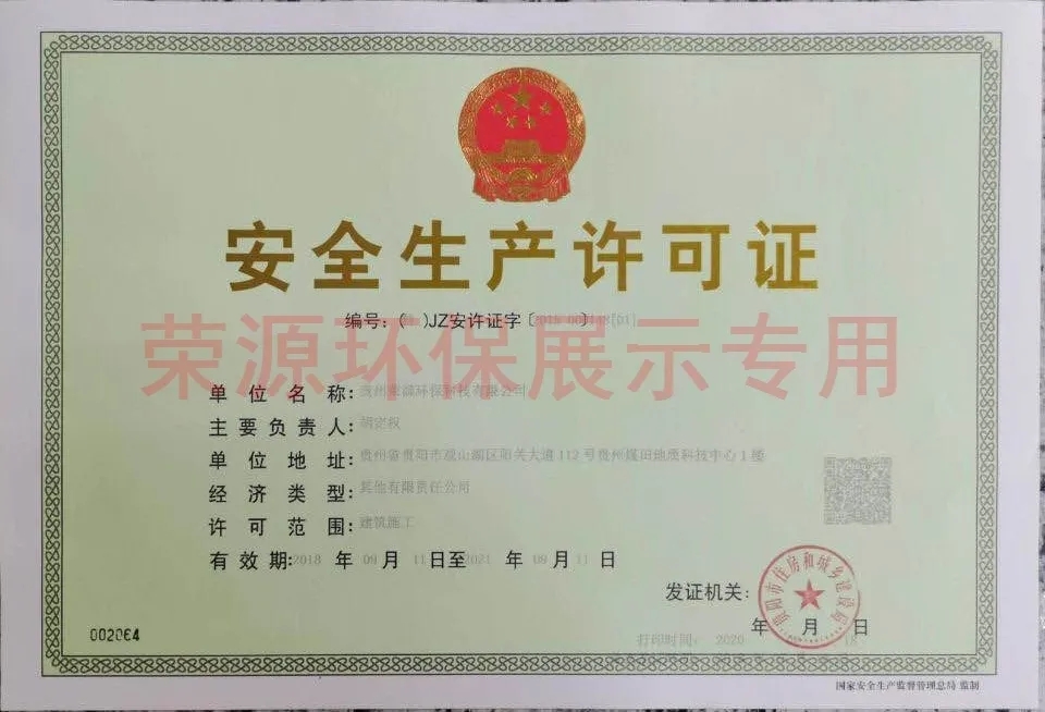 贵州省环境污染治理服务能力证书、