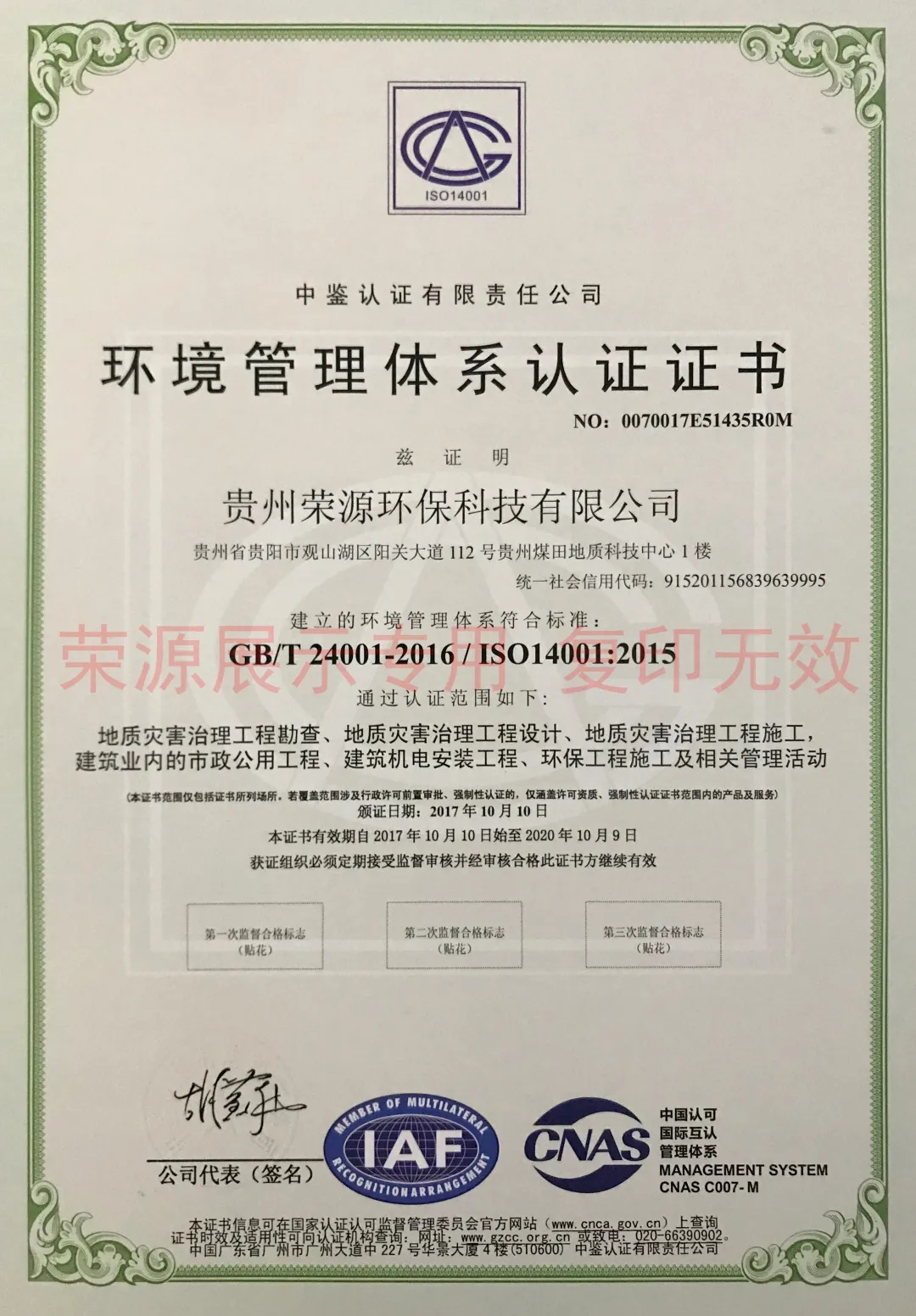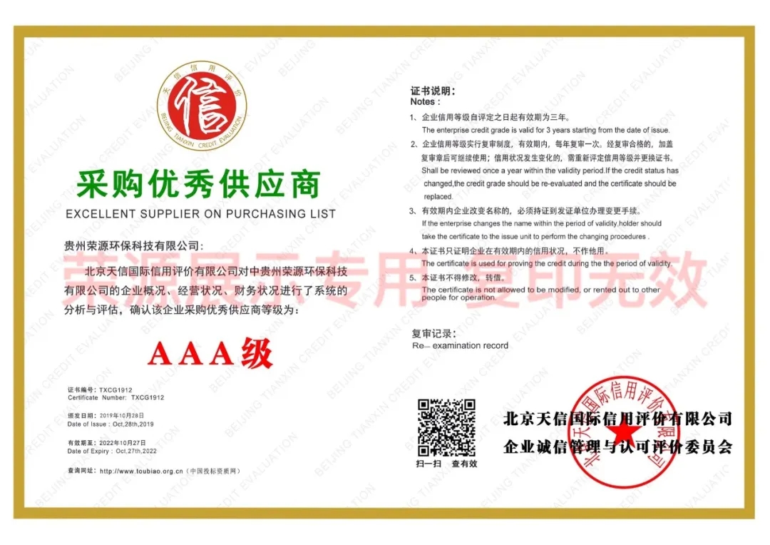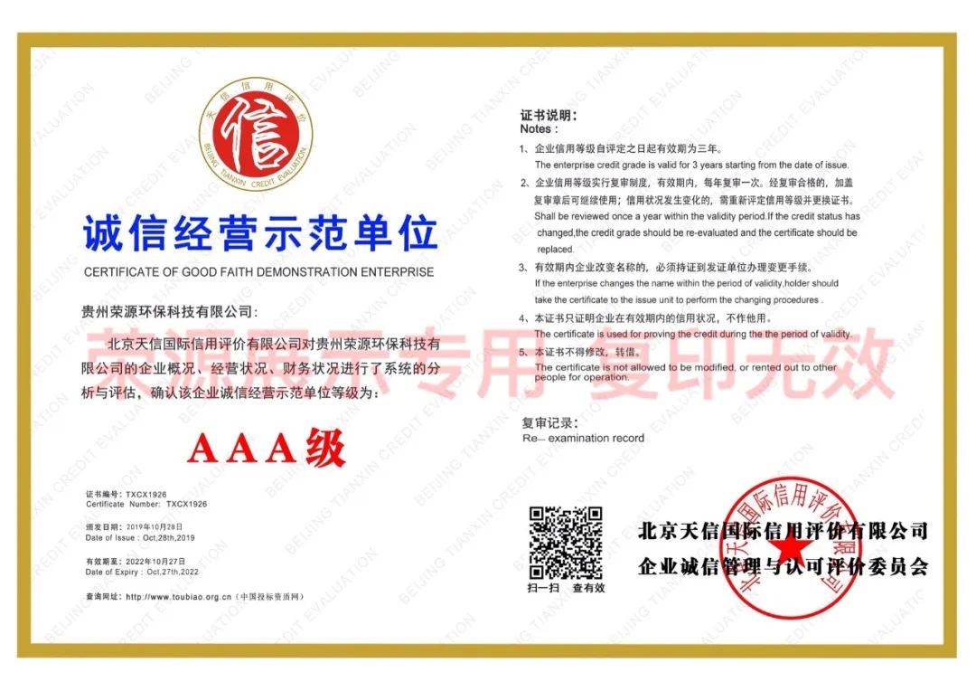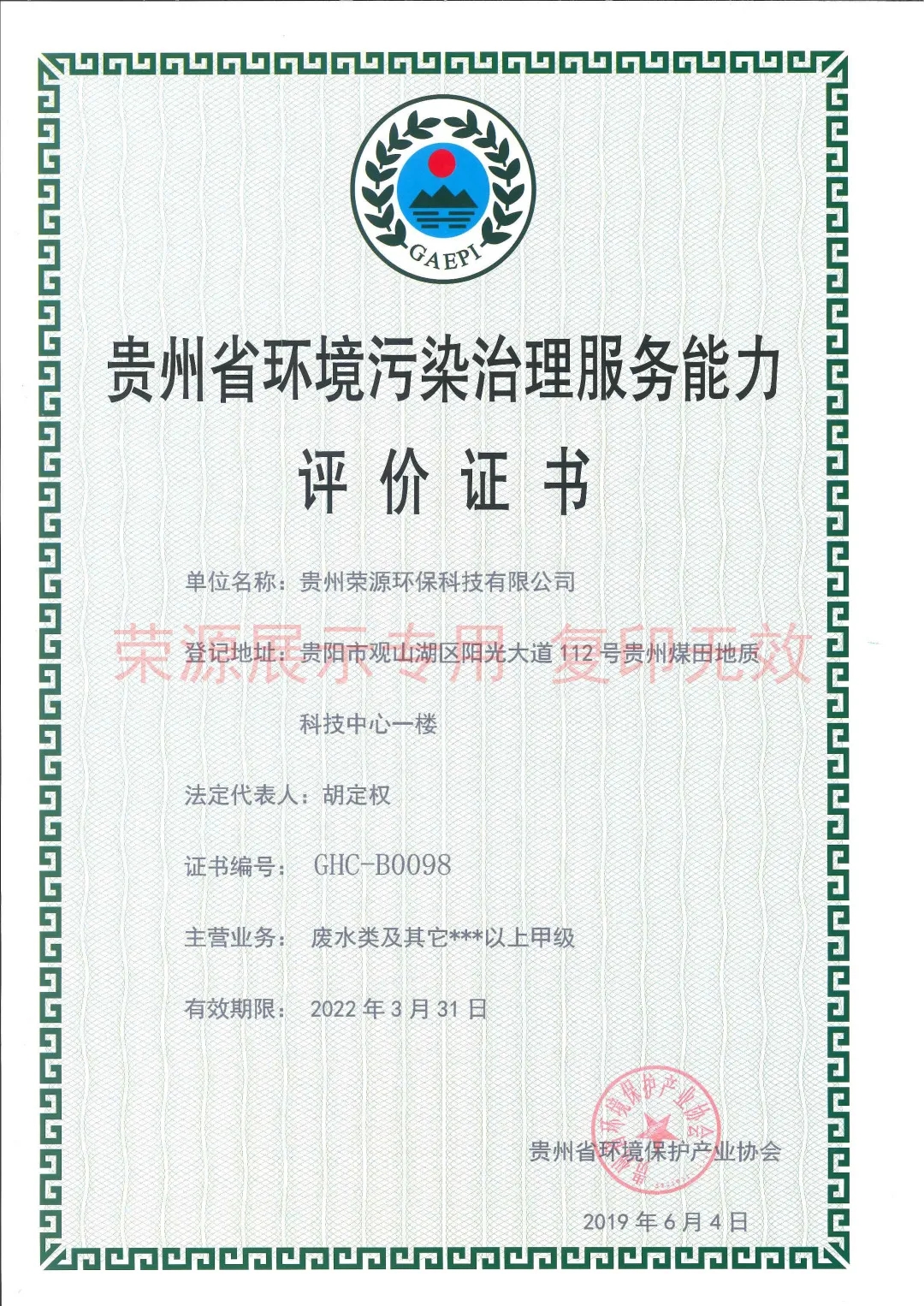 贵州省环境污染治理服务能力证书、