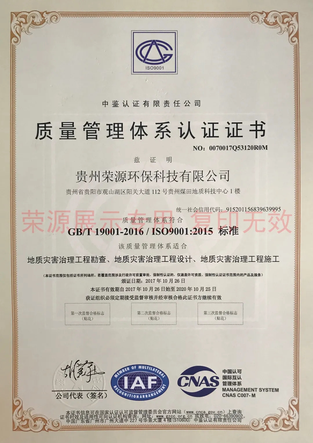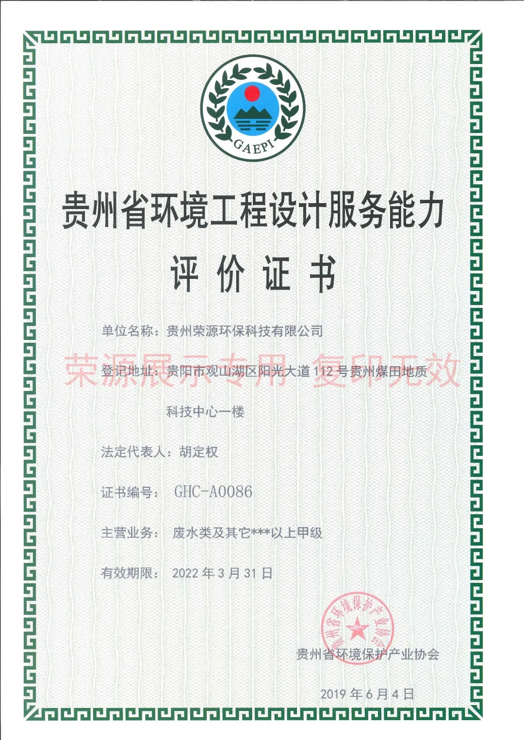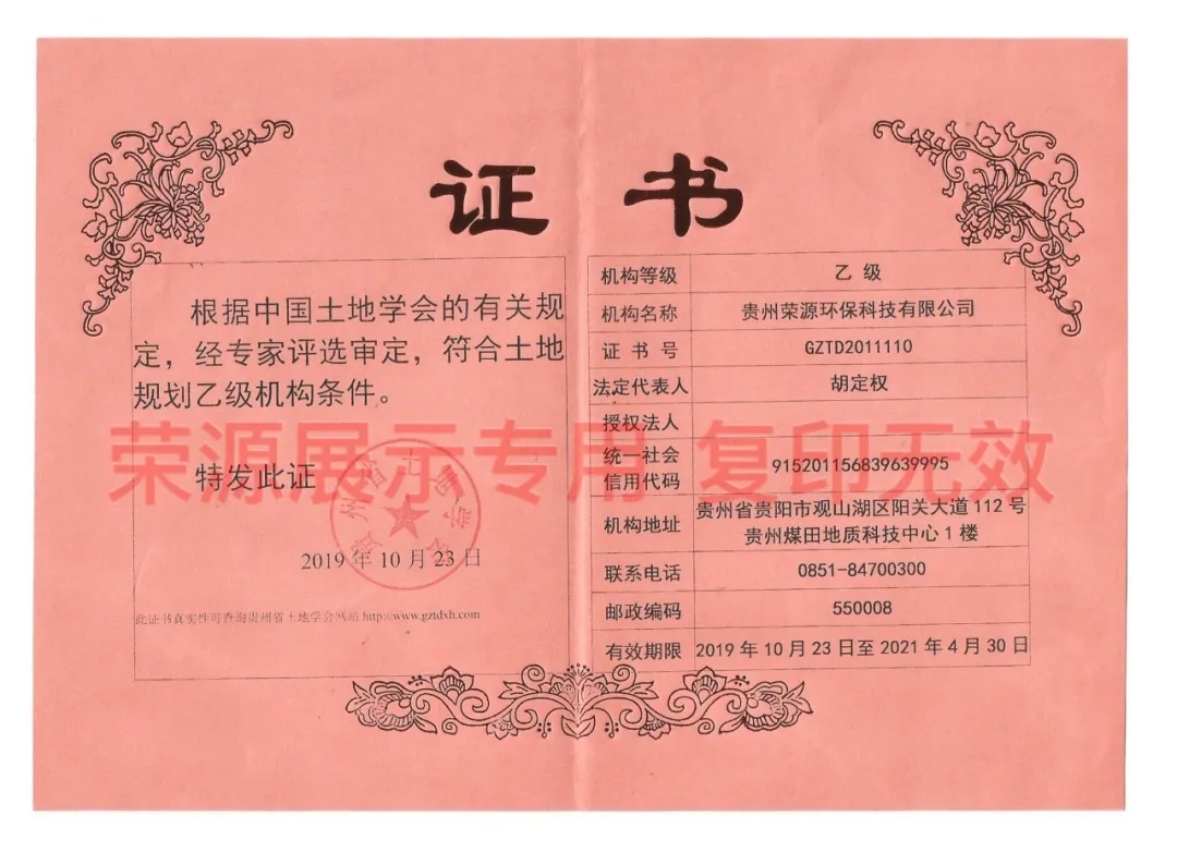 贵州省环境工程设计服务能力证书、