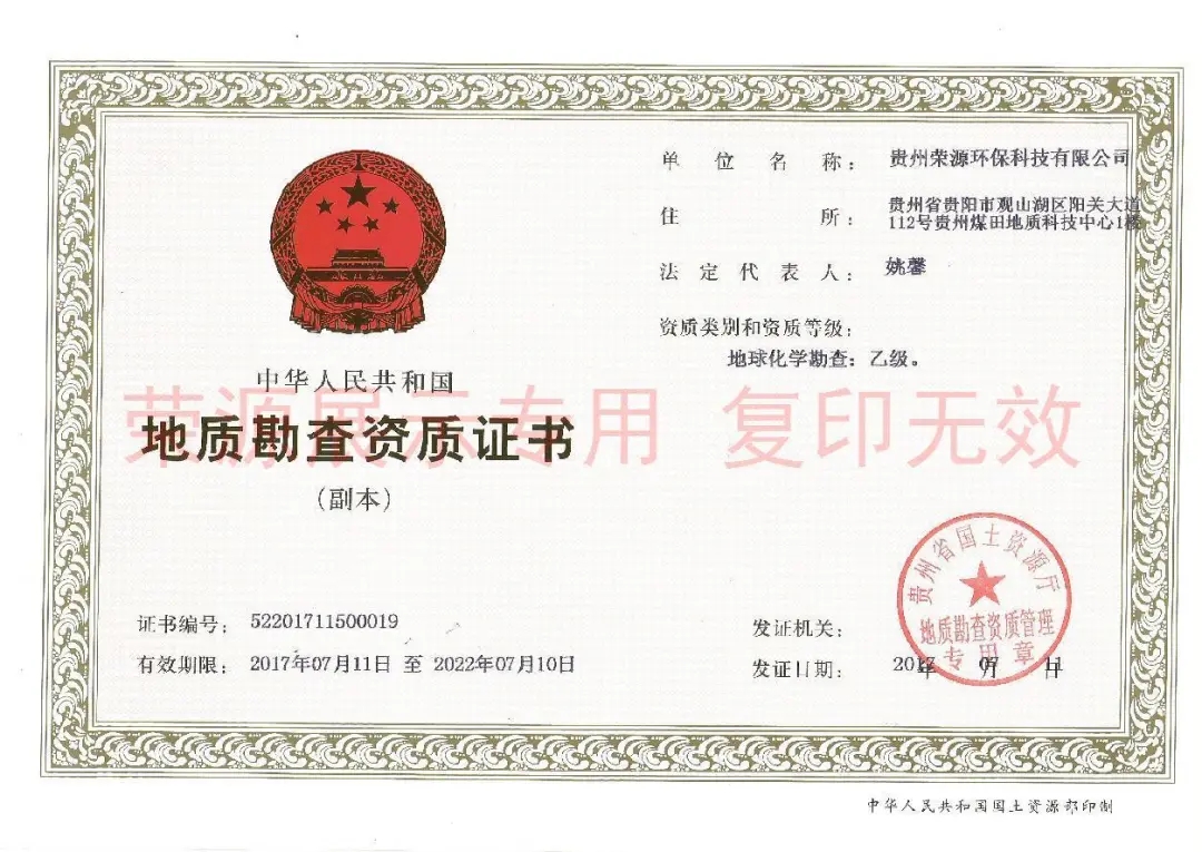 地球化学勘查乙级证书