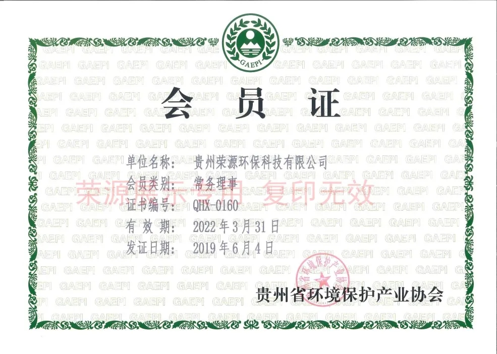 贵州省环境保护产业协会会员证