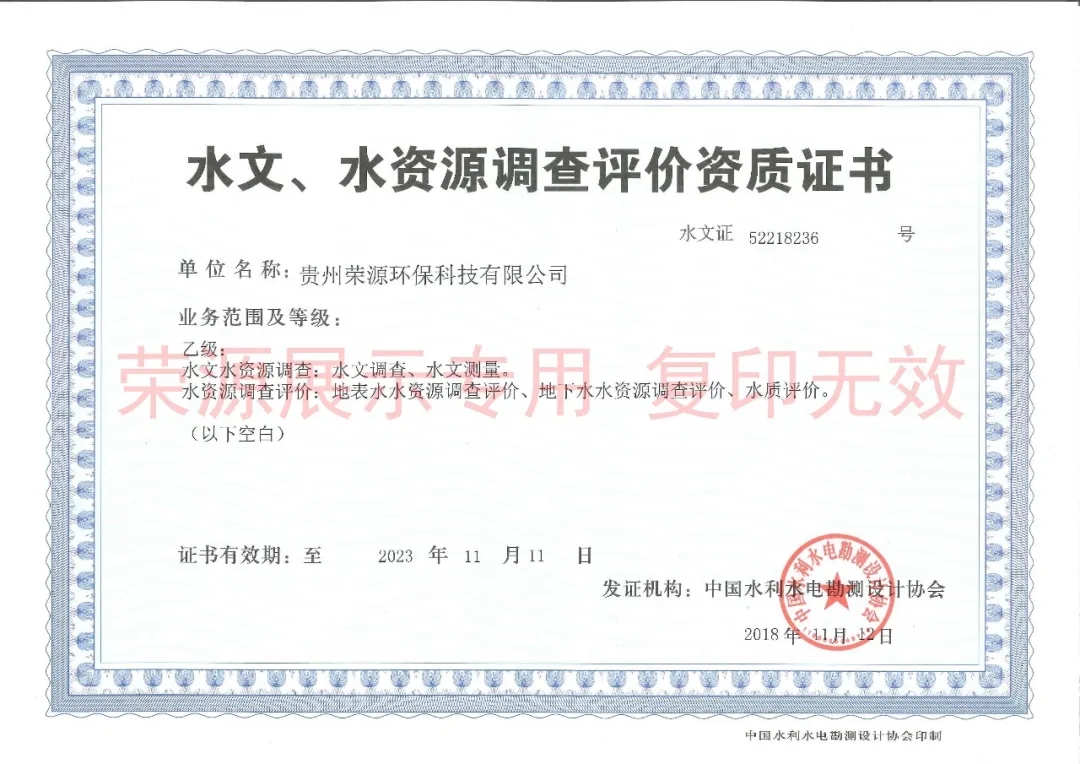 水资源论证资质证书