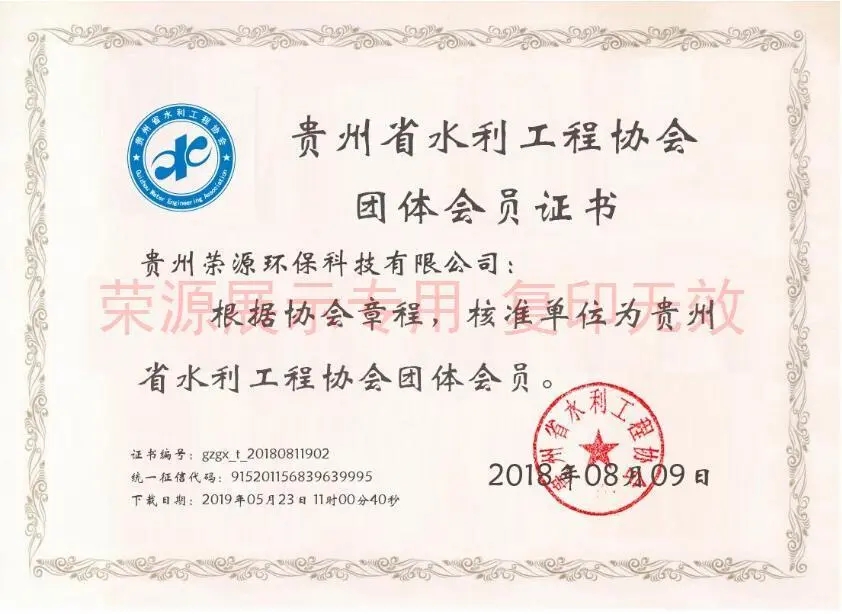 贵州省水利工程协会团体会员证书