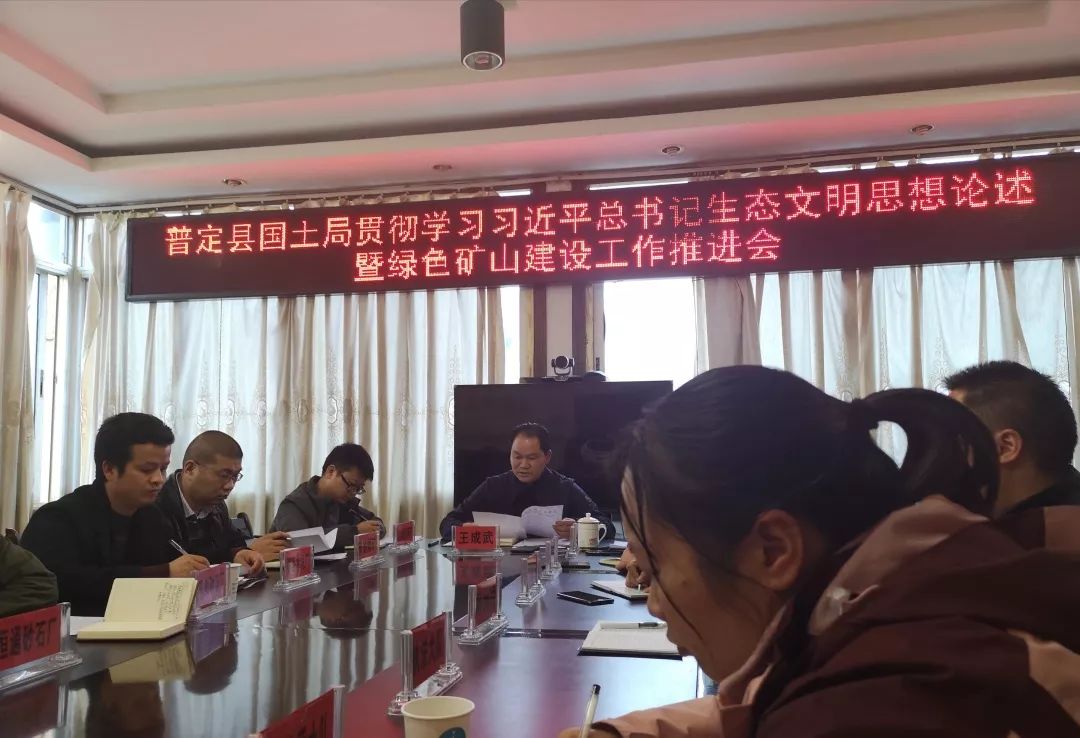 2018年11月16日下午3点,荣源环保受邀参加“普定县国土局贯彻学习生态文明建设重要思想论述暨绿色矿山建设工作推进会”。