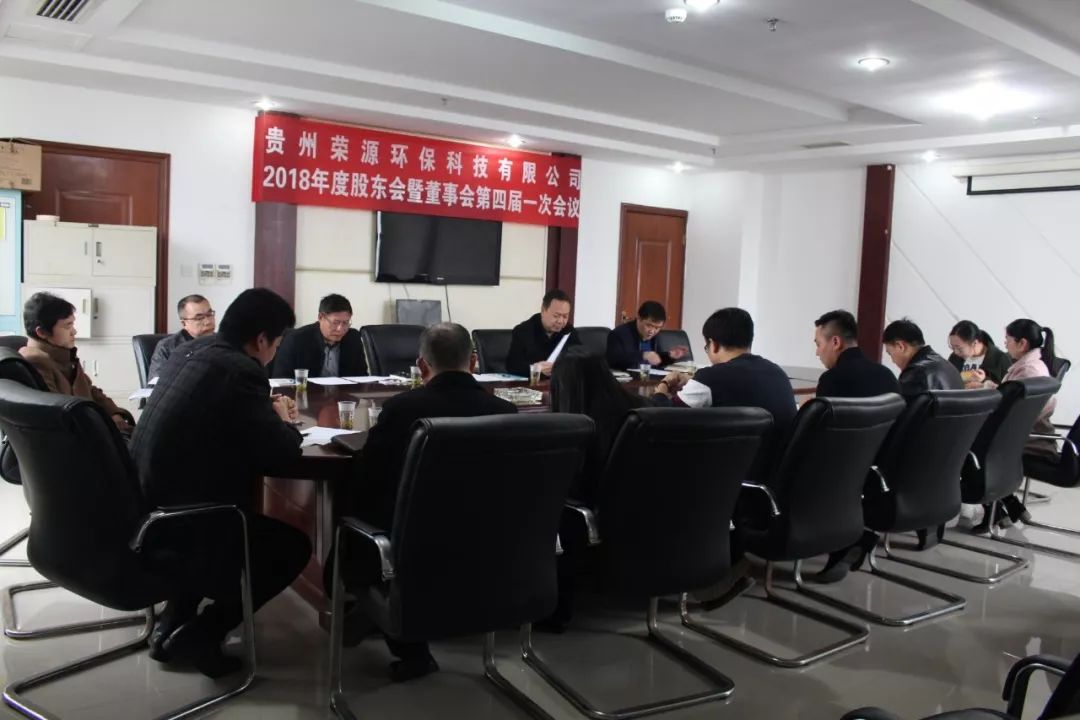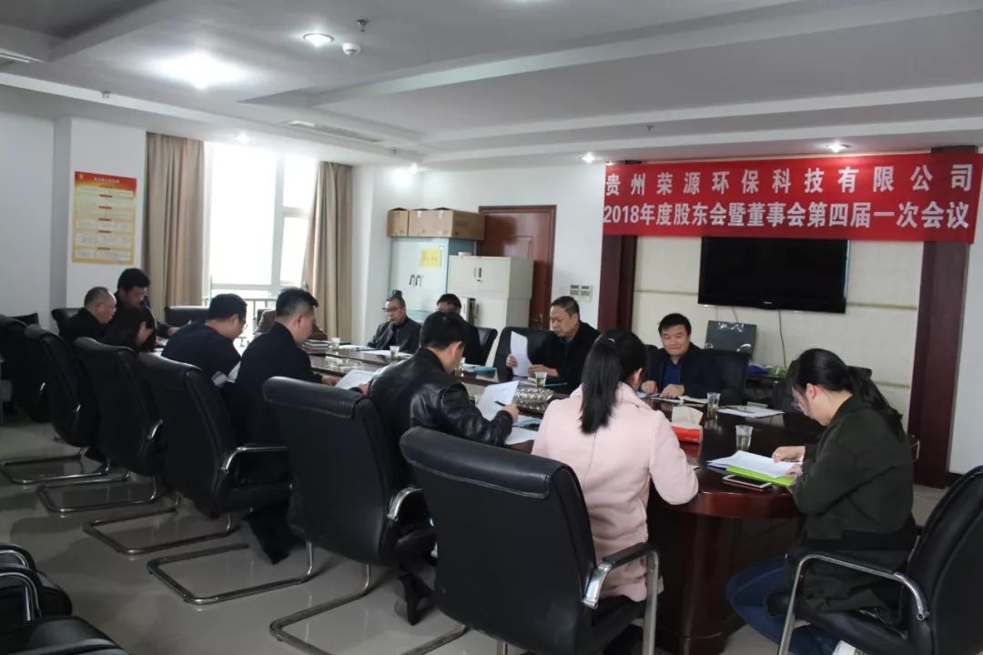 2019年3月4日星期一14:30分,荣源环保在贵州煤田地质科技中心十三楼会议室召开了2018年度股东会暨董事会第四届一次会议。出席会议的人员有股东代表咨询中心主任赵洪、水源队书记刘青、黔中公司董事长明方平;董事会成员姚馨、钟方德、肖建江;董事会秘书徐文慧;监事宋育胜;财务总监杨姝华;公司代表总经理龚朝兵、副总经理胡定权、颜智华、唐长根、贺涛;会议由徐文慧主持。