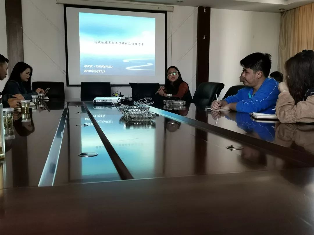 2019年3月21日星期四上午9点30分,贵州荣源环保科技有限公司邀请岩土工程方面的专家谢欢欢,在十三楼会议室开展了岩土工程知识学习培训会,地矿局105队的四位技术骨干参与了此次培训。