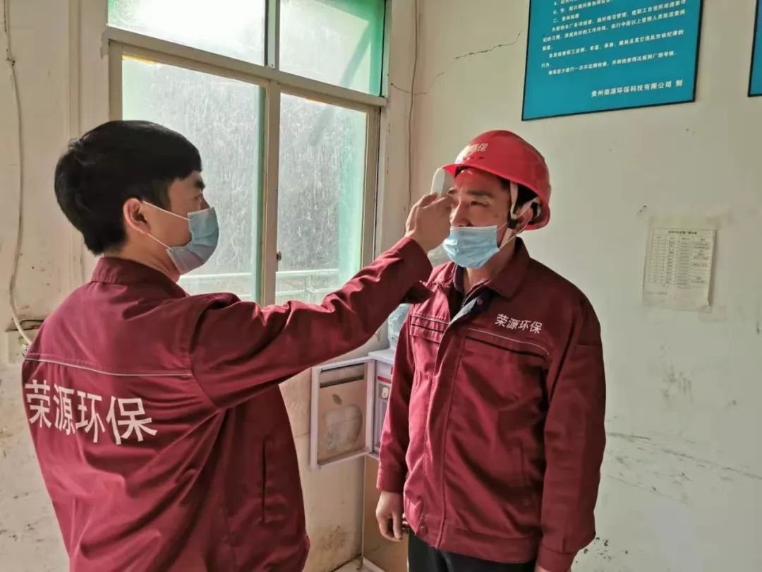 2020年2月全国都沉于新型冠状病毒肺炎疫情的阴霾中,污水处理厂所在地瓮安县也有确诊病例。到处封路封村、物质匮乏。公司如陈林、冯海涛等11位一线人员他们克服重重困难、春节都没过完就回到了工作岗位。为了打赢疫情阻击战,荣源环保严格按照党中央、国务院防控工作统一部署,省委省政府及煤田地质局党委安排,根据省政府办公厅8日下发关于2月9日后有序推进企业项目复产复工的通知要求,公司给污水厂补给了防疫口罩、消毒酒精、温度测量仪等防疫物资。2月10日荣源环保召开了复工复产部署会后,站长陈林安排员工对厂区打扫消毒、检测设备、调试仪表、检测体温、登记了上岗人员健康状况,给所有上岗工人发放防护用品,对员工进行防疫知识培训,所有程序完成后正式复工复产。